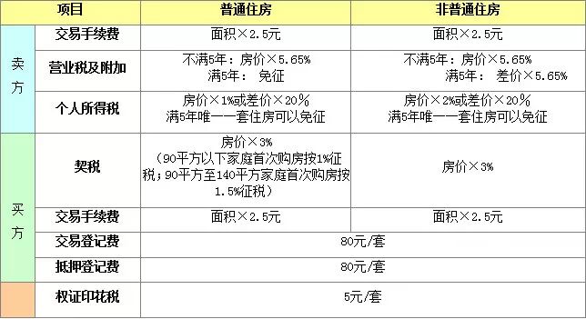 出售方应纳税费:营业税(500万元-200万元)*5.65%=169500元个人所得税500万元*1%=50000元交易手续费124平方米*2.5元=310元共计:219810元故此次交易买卖双方共计缴纳税费为370205元。